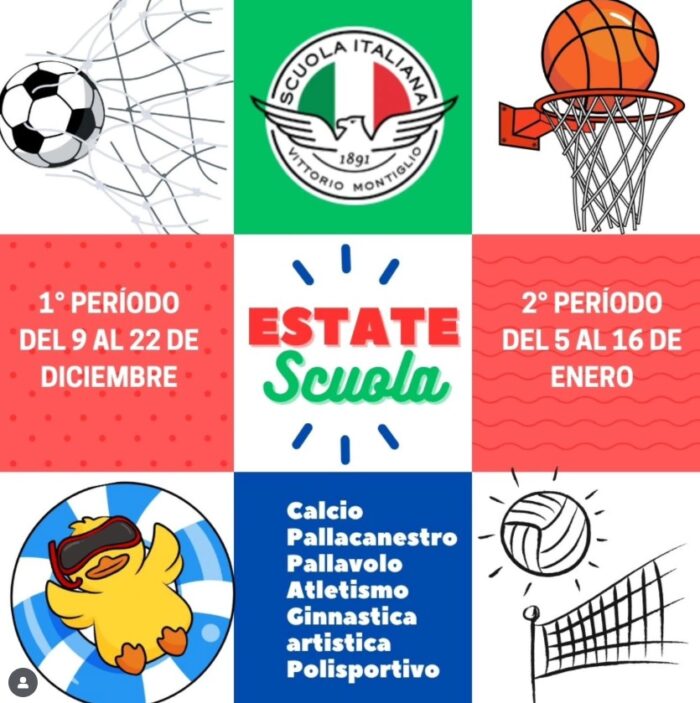 Del 9 de noviembre al 16 de enero, la Scuola ofrecerá talleres deportivos para los alumnos. En “Estate Scuola” podrán encontrar Básquetbol, Vóleibol, Atletismo, Gimnasia Artística, Fútbol y Polisportivo, para niños de 5 a 18 años.
