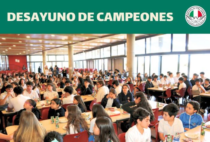 El lunes 15 de diciembre se realizó en el casino de la Scuola el tradicional “Desayuno de Campeones”, una significativa instancia en la que se reconoció a los alumnos que destacaron durante el año en diversas competencias deportivas y en las Olimpiadas de Matemáticas.