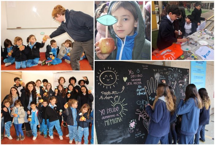Comenzamos en la mañana cuando los alumnos de Media Superior recibieron la visita de un curso de la Scuola Nido o Dell´Infanzia, con el cual realizaron una reflexión y posterior intercambio de manzanas, las que tenían un mensaje escrito sobre la importancia de tener un estilo de vida saludable y las consecuencias en los otros de nuestras decisiones.