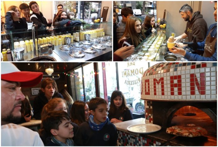 Dopo aver mangiato la pizza ci siamo recati nella gelateria “Oggi” in cui i proprietari gelatai hanno mostrato ai ragazzi come si prepara il gelato con ingredienti, anche in questo caso, provenienti direttamente dall’Italia. Durante la spiegazione hanno svelato loro alcuni trucchi come per esempio che il vero gelato di pistacchio non deve essere verde ma marroncino perché i pistacchi devono essere tostati e, soprattutto, non si deve usare nessun tipo di colorante!