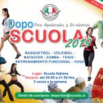 Los invitamos a participar del Dopo Scuola 2019. Los deportes disponibles son: Básquetbol, Vóleibol, Natación, Zumba, Tenis, Yoga y Entrenamiento Funcional. Mayor información: deportes@scuola.cl.