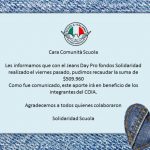 Les informamos que con el Jeans Day Pro fondos Solidaridad realizado el viernes pasado, pudimos recaudar la suma de $509.960.