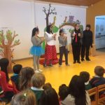 El jueves 13 de abril, las educadoras de la Scuola Nido realizaron una dramatización del cuento "La ratona que sabía ladrar", que muestra la historia de una familia de ratones y un gato.