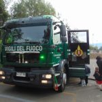 Los bomberos de la Pompa Italia visitaron la Scuola Nido. Los niños tuvieron la oportunidad de conocer de cerca el carro bomba, las herramientas y la indumentaria utilizada por esta importante institución.