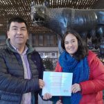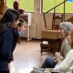 Las alumnas Rosario del Canto, Isabella Gaune y Alessandra Raggio, reporteras del noticiero RSN, visitaron el Hogar Italiano para realizar una nota sobre los trabajos que se están realizando en la residencia para mejorar su red eléctrica.
