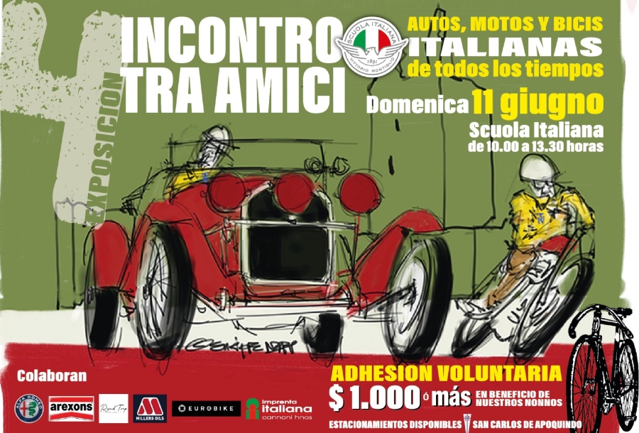 Los invitamos a participar de la cuarta versión del «Incontro tra amici», exposición de autos, motos y bicicletas italianas de todos los tiempos, que se realizará en la Scuola el domingo 11 de junio de 10:00 a 13:30 horas.