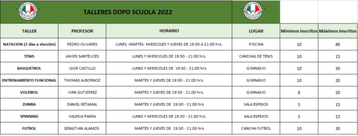 Los invitamos nuevamente a participar de las actividades deportivas “Dopo Scuola” programadas para el Primer Semestre.
