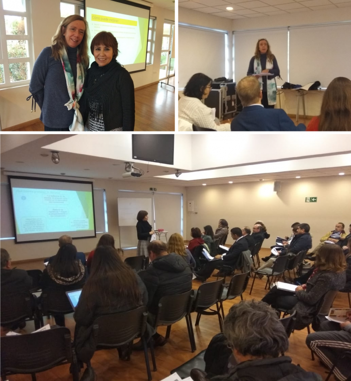 En dicha instancia, algunos representantes de los establecimientos asistentes, dieron a conocer su análisis sobre los diversos aspectos de la normativa. En esta oportunidad, Astrid Moreno, Directora Académica de nuestro colegio, fue seleccionada para presentar reflexiones sobre la Disposición “D” de la normativa, referida a la evaluación de los estudiantes.