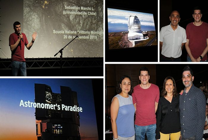 Mercoledì 20 Novembre gli alunni ed alunne della scuola media superiore, accompagnati dai loro professori e dal rettore Italo Oddone, si sono riuniti nel teatro Verdi per partecipare ad un’attività organizzata dall’elettivo matematico-fisico della III liceo. Questa attività prevedeva una presentazione sulla “Materia Oscura” ,realizzata dall’astronomo Sebastian Marchi, ex alunno della scuola italiana e attualmente dottorando (ormai già al termine) della Universidad de Chile, e la proiezione di tre dei sei video realizzati dai ragazzi e le ragazze dell’elettivo. Durante l’attività gli studenti Jorge Disi e Alessandra Colombo hanno fatto una breve introduzione, nella quale hanno fatto notare, citando le loro parole, come: “questa esperienza, (riferendosi al viaggio al Paranal realizzato i primi di settembre), per noi ha significato un cambio nella nostra routine, perchè siamo abituati a fare lezione dentro un’aula, sempre con 4 pareti che ci circondano, ma questo viaggio ci ha mostrato la bella relazione che abbiamo noi esseri umani con la natura, in special modo, con l’astronomia e lo spazio”.