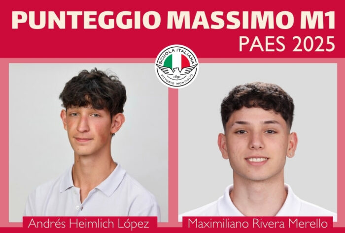 Congratuliamo i nostri studenti Andrés Heimlich López (IV C) e Maximiliano Rivera Merello (IV D) per aver ottenuto punteggio massimo (1.000) nella PAES M1 2025.