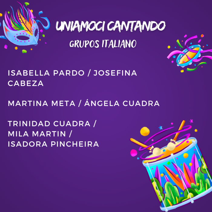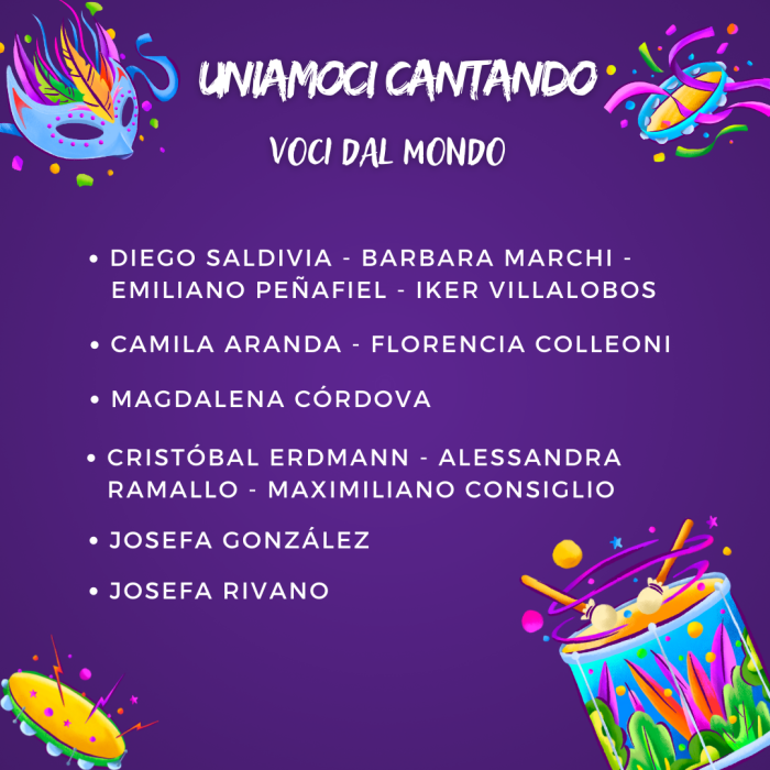 Compartimos con ustedes el listado de los alumnos seleccionados para cantar en la XXXVII versión del Uniamoci Cantando, que se realizará el miércoles 23 de agosto.