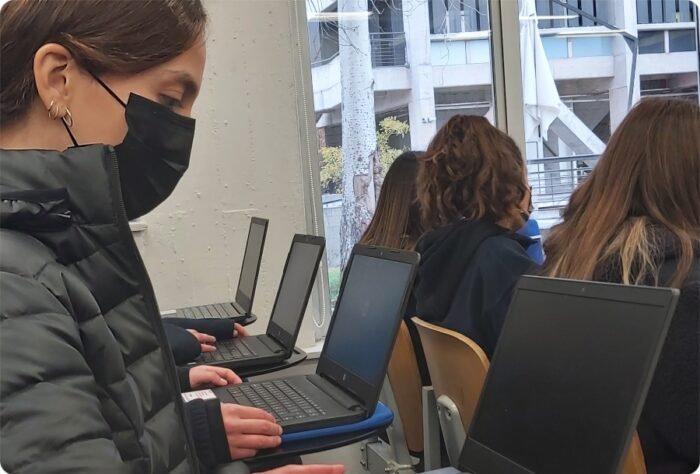 En computadoras individuales, las alumnas trabajaron en “Machine Learning” para entrenar un programa con algoritmos que identificaban patrones en imágenes y elaboraban predicciones según lo clasificado por ellas.