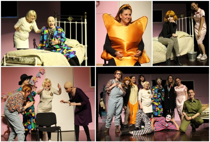 Este año decidimos poner en escena una obra chilena contemporánea de una compañía que indaga en lo marginal, lo tabú, lo minoritario y lo reprimido de la sociedad, a través de un lenguaje grotesco y un tinte de comedia negra. En nuestra obra, “Historias de amputación a la hora del té”, contamos la historia de un grupo de mujeres feas que acompañan a la joven Laurita en su último cumpleaños, antes de morir de cáncer. La enfermedad, el dolor, la violencia, el existencialismo, la homofobia, la homosexualidad, la exclusión y la injusticia fueron los temas que encarnaban, de diferentes formas y colores, nuestros personajes.